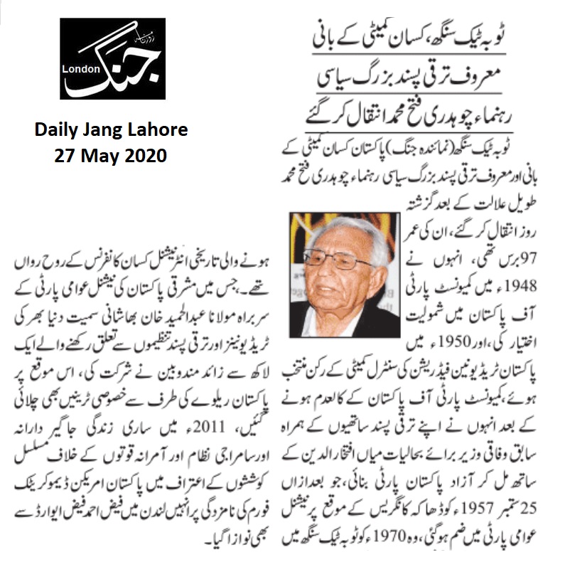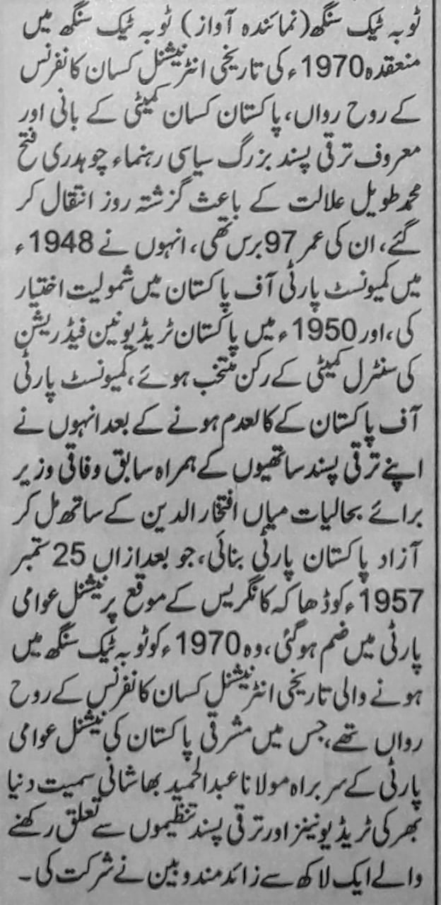 Veteran Revolutionary and Kissan Leader of Pakistan
