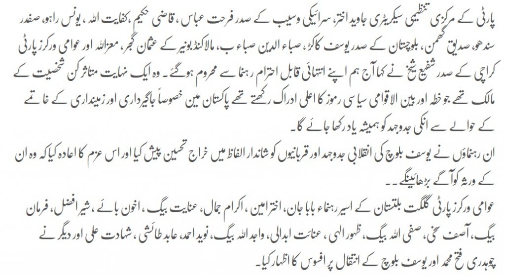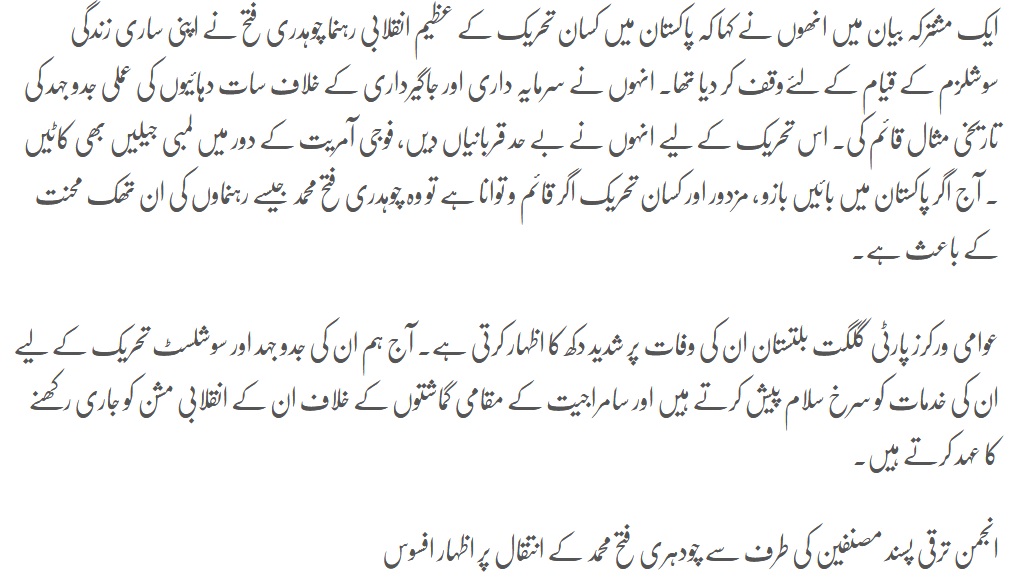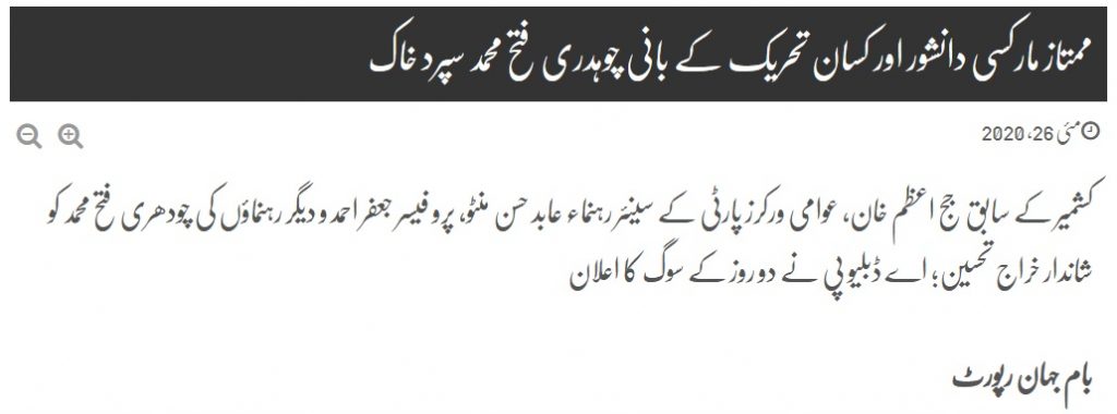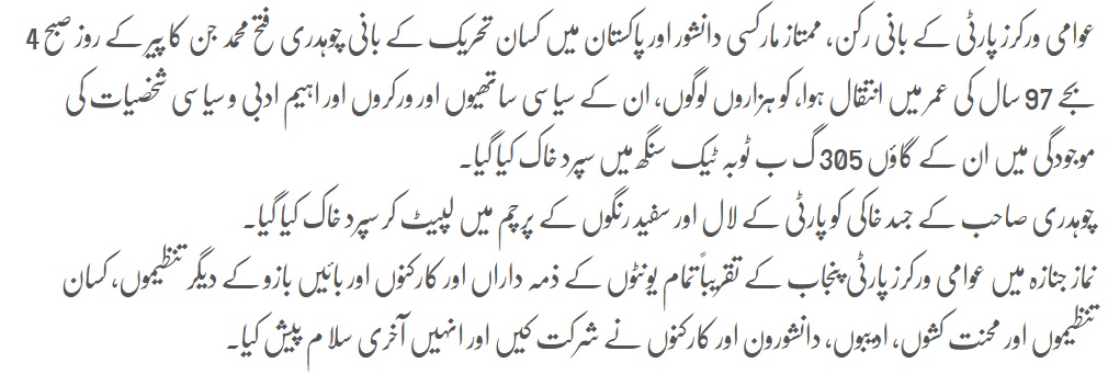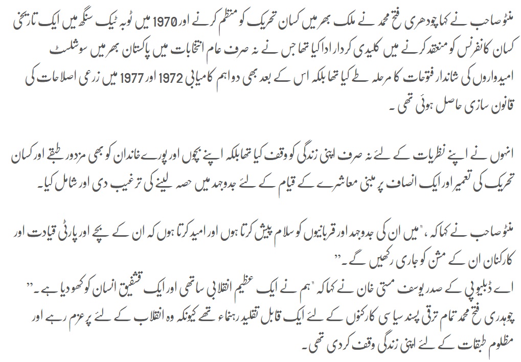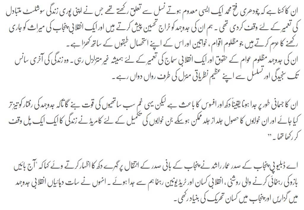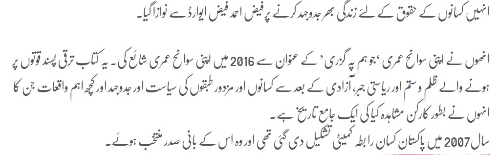 Veteran Revolutionary and Kissan Leader of Pakistan