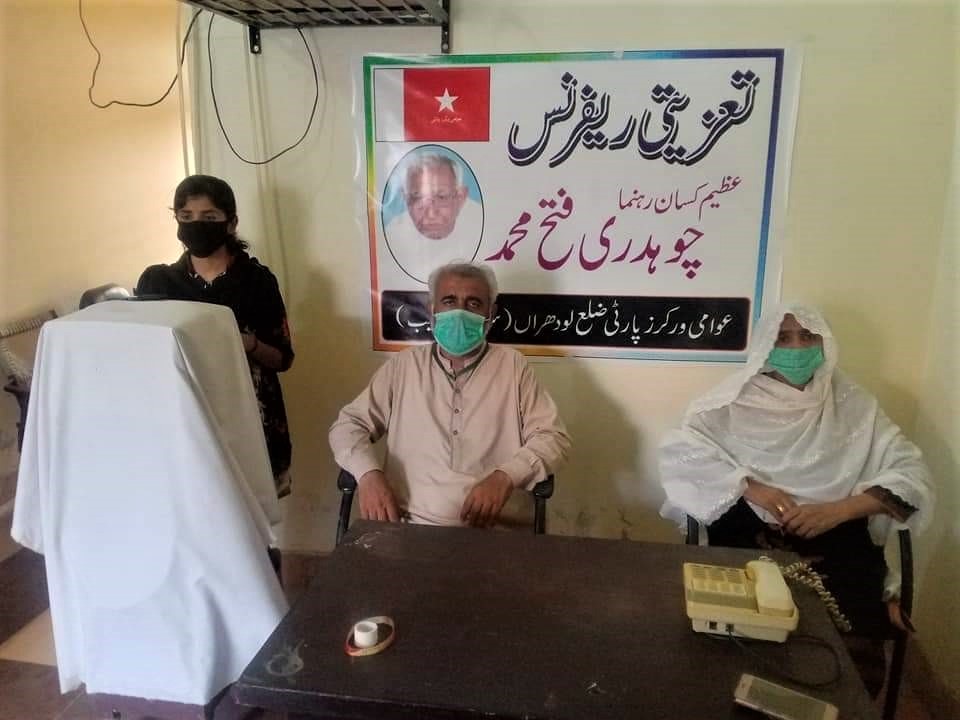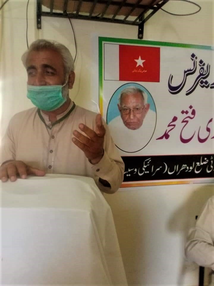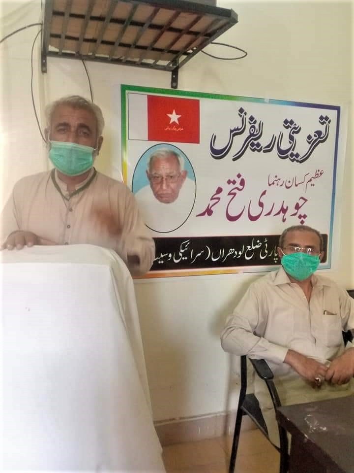 اپنے قائد ، لیڈر مرحوم چوہدری فتح محمد کو خراج عقیدت پیش کرنے کےلئے عوامی ورکرز پارٹی ضلع لودھراں (سرائیکی وسیب) کی طرف سے ایک ریفرنس کا انعقاد کیا گیا جس میں کوثر شاہین، شفیق الماس، طارق انجم، نوشین اعجاز، ایمن آفرین، نادیہ وکیل نے چوہدری صاحب کی زندگی پر روشنی ڈالی اور سرخ سلام پیش کیا